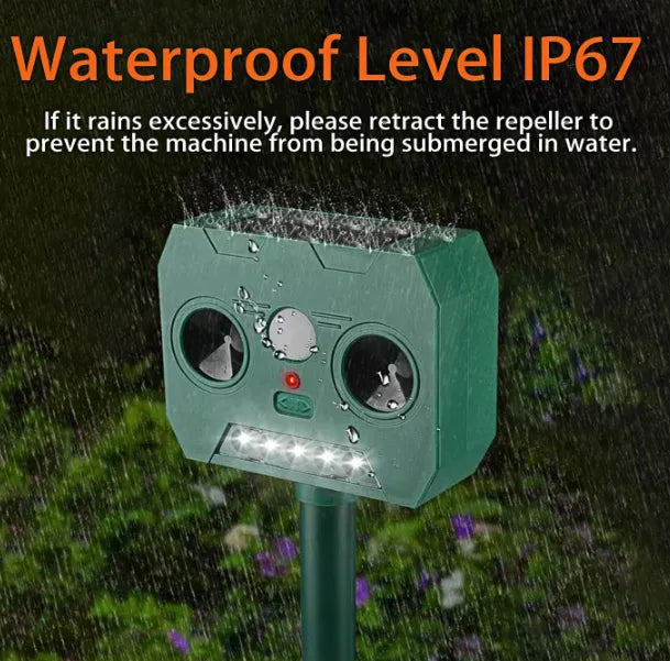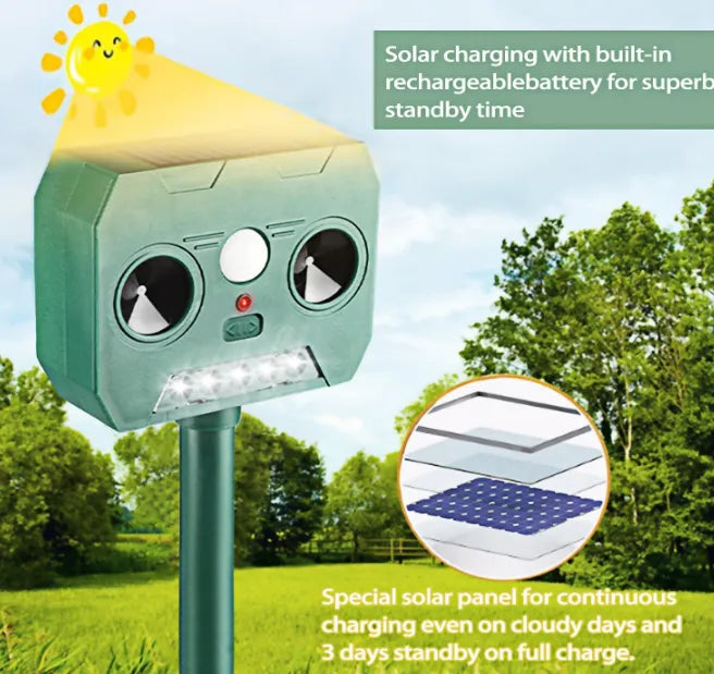 Protejează-ți curtea și grădina cu acest aparat solar împotriva dăunătorilor, conceput pentru a descuraja animalele nedorite din zonele exterioare. Alimentat solar și ușor de instalat, dispozitivul oferă o soluție practică pentru protecția spațiilor verzi fără cabluri sau costuri suplimentare de energie.