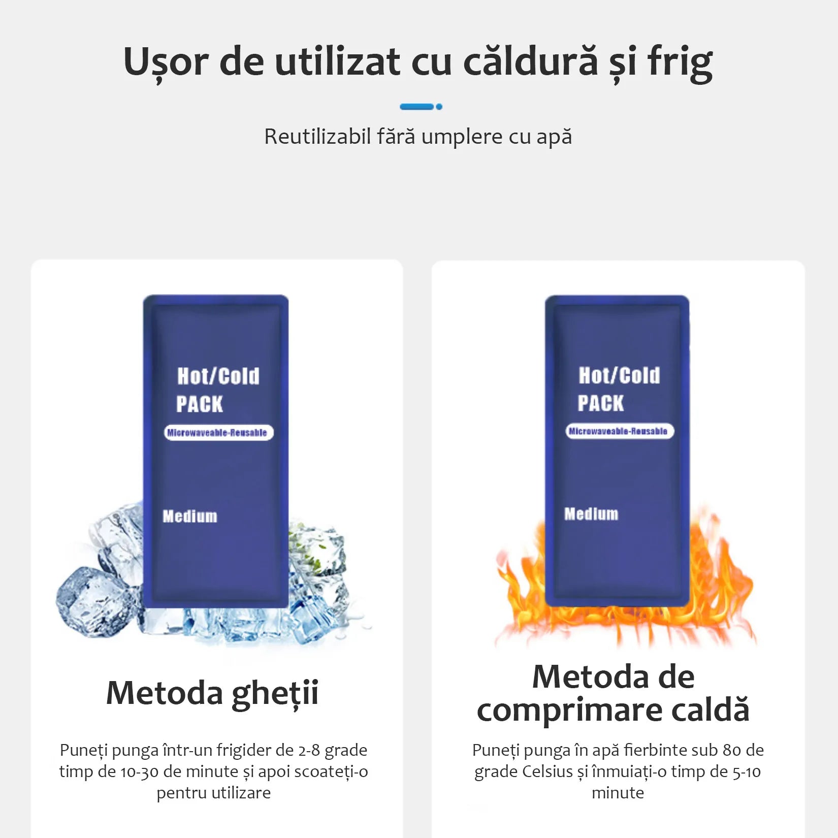 Compresa cu gel reutilizabilă pentru terapie caldă și rece este soluția practică pentru ameliorarea durerilor articulare, umflăturilor, entorselor sau leziunilor sportive. Concepută pentru a fi utilizată atât la rece, cât și la cald, aceasta oferă un efect calmant și relaxant, contribuind la reducerea inflamației și accelerarea recuperării.