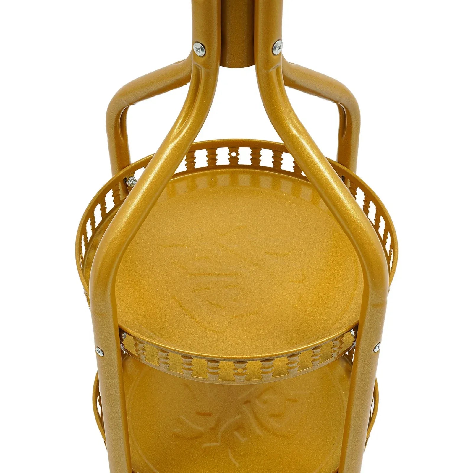Cuier de Podea Metalic Auriu – 34 x 189 cm, cu Cârlige Multiple și 2 Rafturi de Depozitare