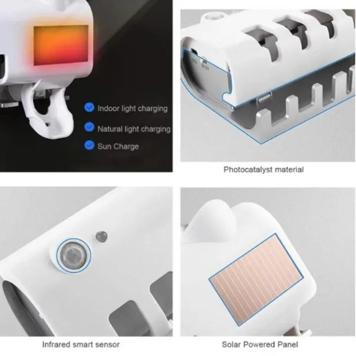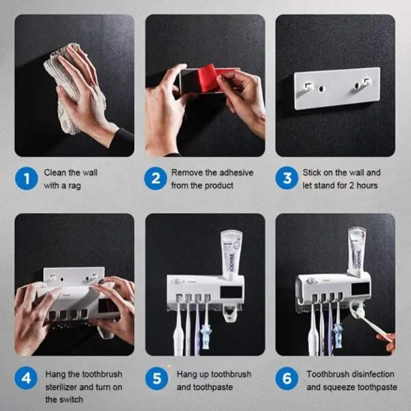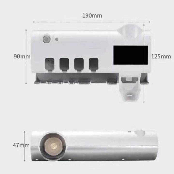 Asigură igiena zilnică a familiei tale cu acest dozator pentru pastă de dinți prevăzut cu funcție de sterilizare UV pentru periuțe. Practic și modern, dispozitivul combină dozarea automată a pastei cu un suport organizator pentru periuțe, contribuind la menținerea unui spațiu curat și igienic în baie.