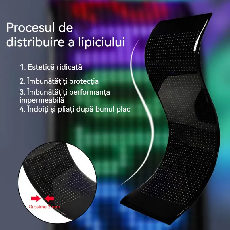 Personalizează interiorul sau exteriorul mașinii tale cu acest ecran LED flexibil, controlat wireless prin aplicație mobilă. Afișajul multicolor permite redarea de texte, simboluri și efecte vizuale dinamice, oferind un impact vizual puternic și o experiență modernă de personalizare auto.