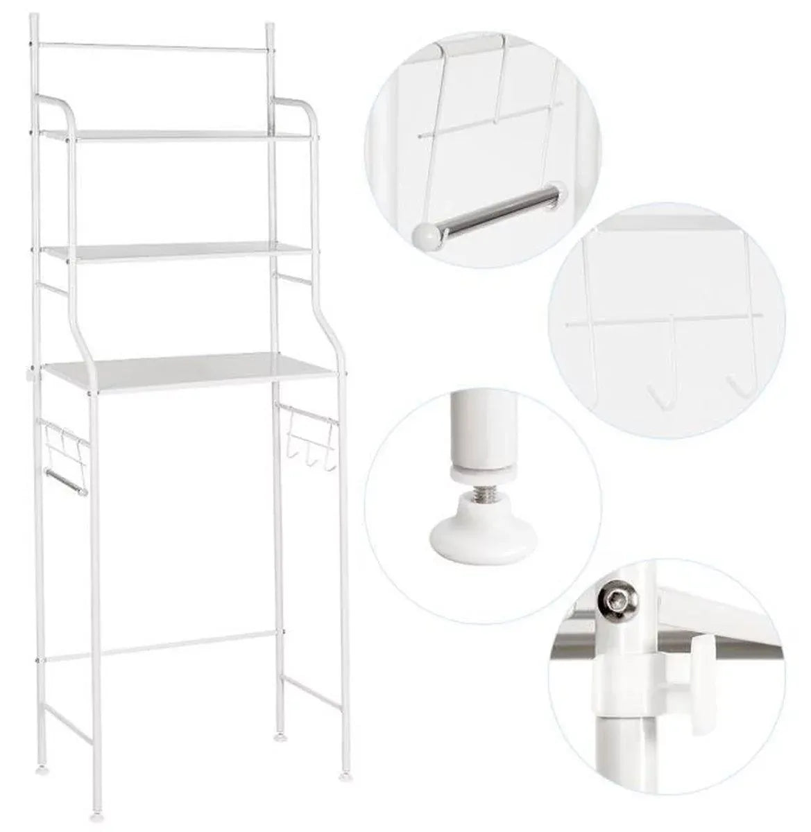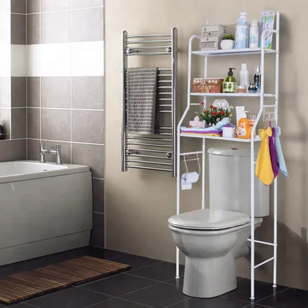 Valorifică inteligent spațiul de deasupra mașinii de spălat cu această etajeră metalică practică și rezistentă. Concepută special pentru băi sau spații înguste, oferă 3 polițe generoase pentru depozitarea prosoapelor, detergenților și produselor de igienă, menținând totul organizat și la îndemână.