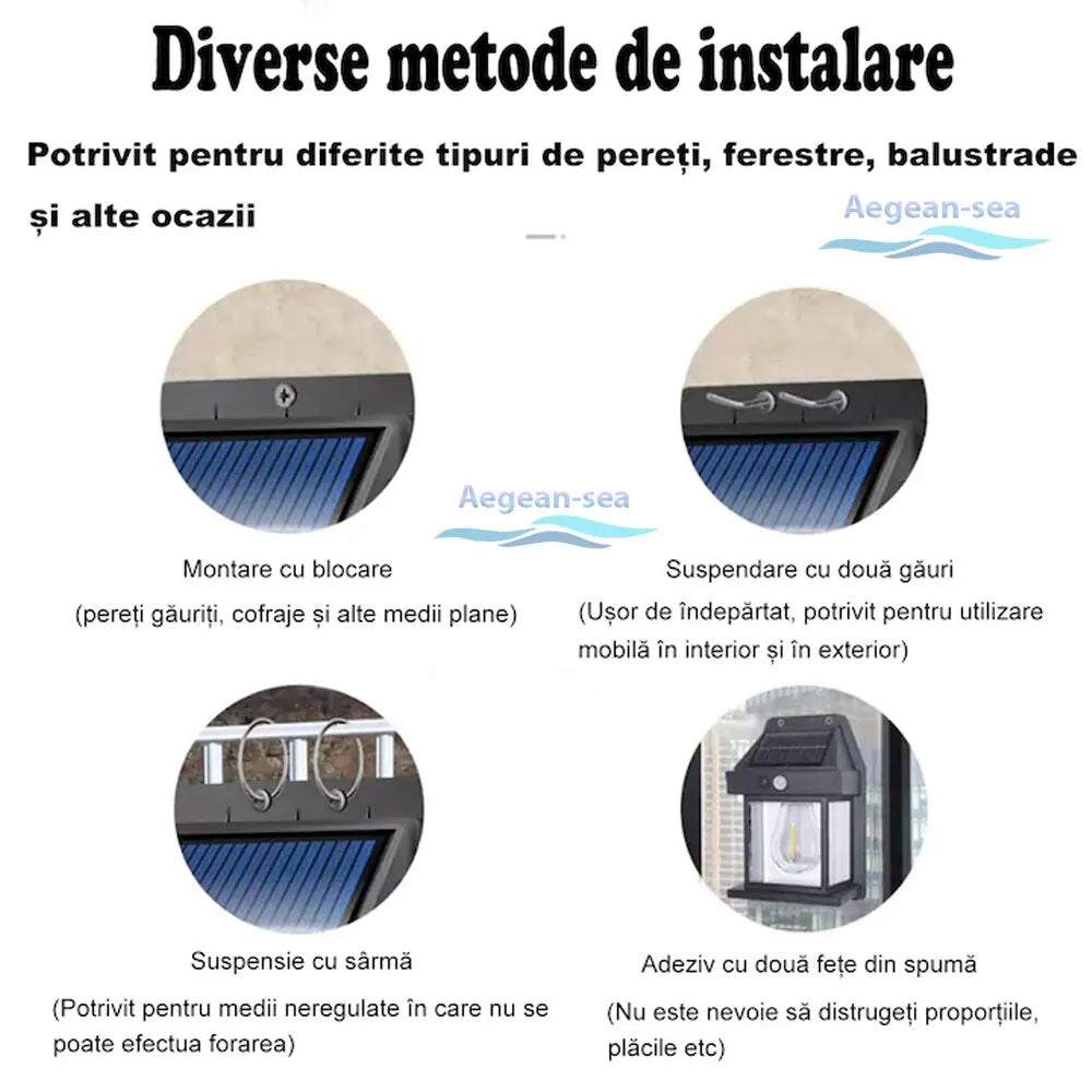 Lampă Solară Exterior LED IP65 Impermeabilă pentru Grădină și Terasă