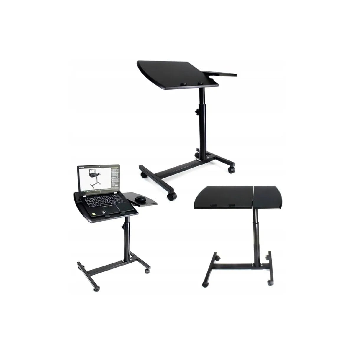 Lucrează confortabil oriunde cu această masă metalică pentru laptop, dotată cu roți și sistem de reglare a înălțimii și unghiului blatului. Ideală pentru birou, dormitor sau spații de lucru flexibile, masa oferă mobilitate, stabilitate și ergonomie într-un design modern și practic.