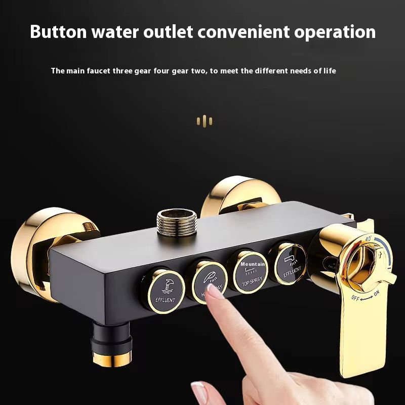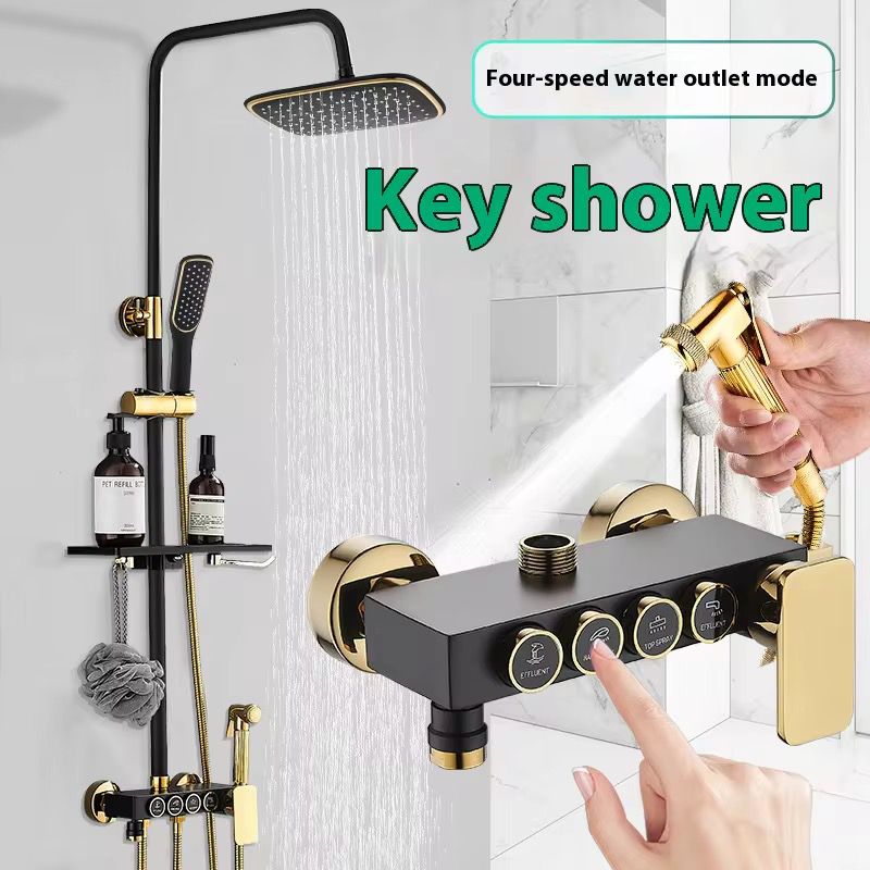 Setul de duș modern este alegerea ideală pentru o baie elegantă și funcțională. Cu un design premium în nuanțe de negru și auriu, acesta oferă atât un cap de duș fix tip ploaie, cât și o pară de duș mobilă pentru flexibilitate maximă. Suportul culisant permite reglarea înălțimii pentru confort optim în utilizare zilnică.