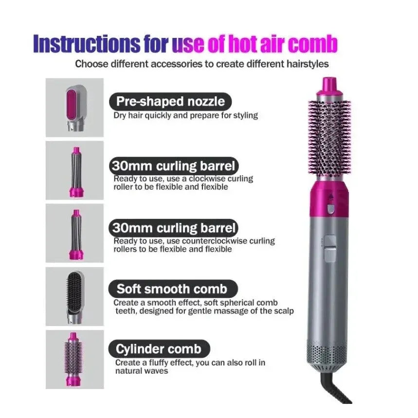 Obține coafuri perfecte rapid și fără efort cu setul de perie de păr 5 în 1, cu putere de 1000W și capete detașabile. Conceput pentru uscare, îndreptare, ondulare și volum, acest aparat multifuncțional este ideal pentru utilizare zilnică, oferind rezultate profesionale direct la tine acasă.