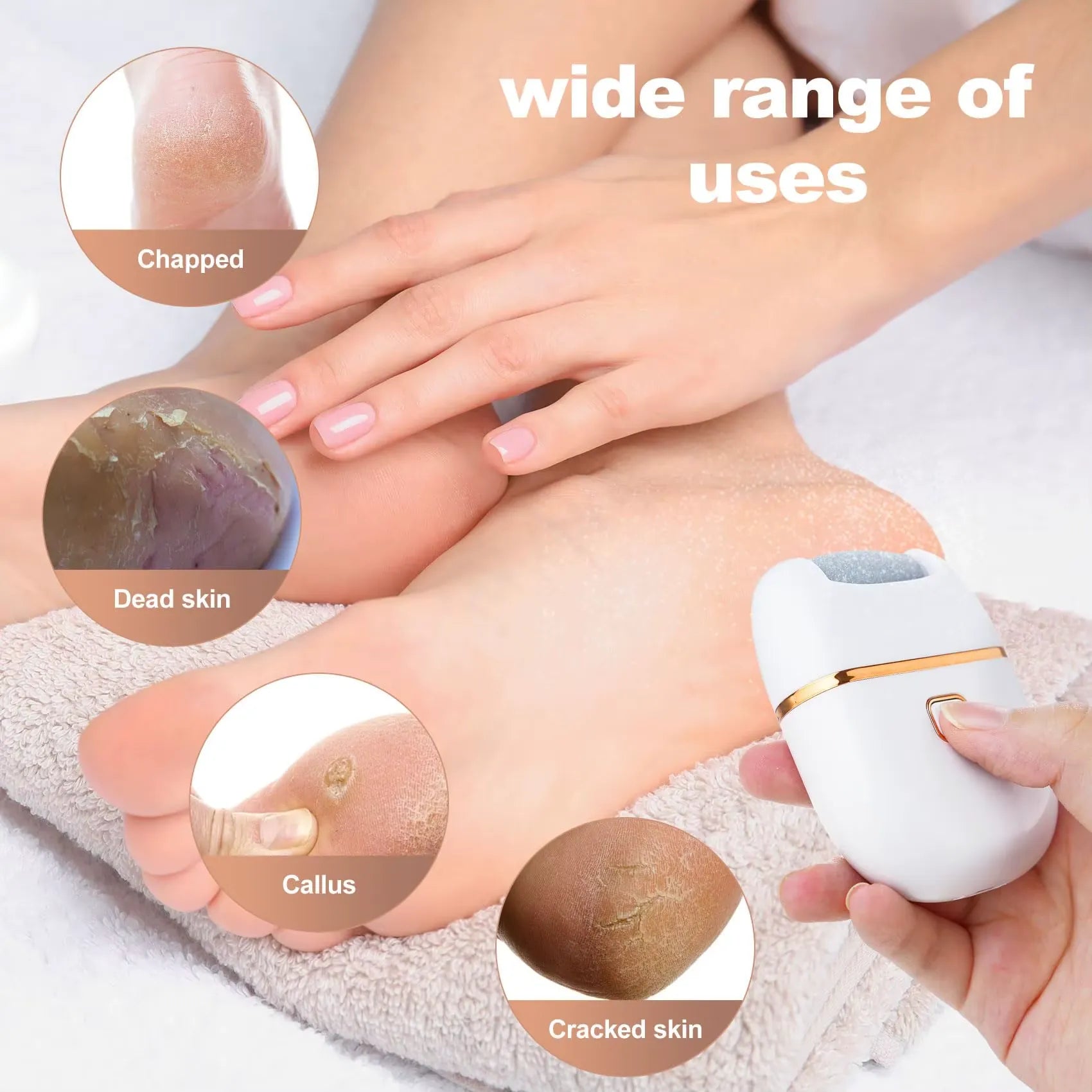 Suportul pentru pilă electrică de pedichiură este soluția practică pentru îngrijirea eficientă a tălpilor direct la tine acasă. Echipat cu 2 viteze de funcționare și o autonomie de până la 30 de minute, acest dispozitiv ajută la îndepărtarea pielii îngroșate și la obținerea unor picioare netede și îngrijite.