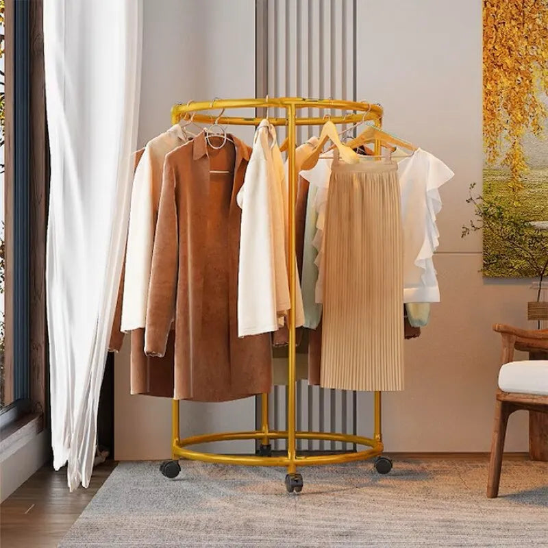 Organizează-ți hainele elegant și eficient cu suportul rotund pentru haine din oțel inoxidabil, cu design modern și finisaj auriu. Ideal pentru dormitor, dressing, magazin sau showroom, acest suport oferă spațiu generos pentru expunere și depozitare, având o capacitate de susținere de până la 40 kg. Datorită roților pivotante, poate fi mutat cu ușurință oriunde ai nevoie.
